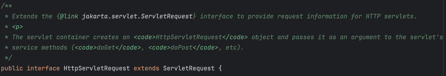 - HttpServlet의 service 메소드는 HttpServletRequest를 인자로 받습니다. 이 때의 HttpServletRequest는 ServletRequest 인터페이스의 구현체입니다.