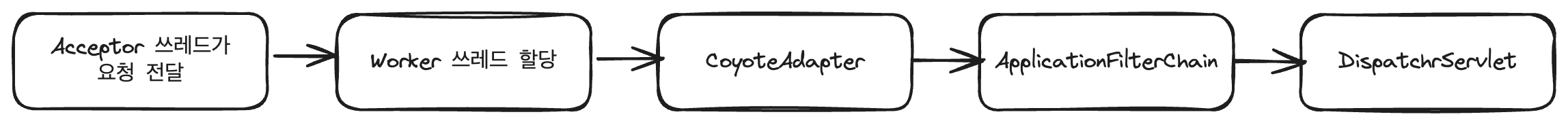 이전에 Acceptor 쓰레드가 요청을 받아 `Worker 쓰레드`로 할당한다고 언급했습니다. 서버에 요청이 오면 Worker 쓰레드를 생성하여 해당 요청을 처리합니다.