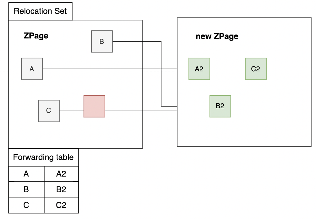 - 새로운 ZPage(Relocatable Page) 생성, 살아있다고 판단한 객체는 해당 ZPage에 할당