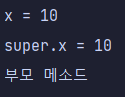 Child 인스턴스를 생성하고 methodChild() 를 호출했을 때의 결과는 위와 같습니다. 즉 super 는 조상 자체를 가르키며 조상 객체의 메소드, 인스턴스 변수를 호출하는데 사용됩니다.