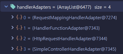 우리는 이전 단계에서 HandlerMapping 를 모두 탐색하여 request 에 맞는 handler object를 찾았다. 이젠 이 handler를 어떻게 실행할 것인지 알아야하는데 그건 HandlerAdatper에 있다. 그래서 이 handler로 우리는 다시 HandlerAdapter 를 탐색한다.